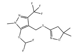 | 英文名称: | 3- (5-Difluoro Methoxy group -1-methyl-3-trifluoromethyl-1H-pyrazole-4-methyl) thio-4,5-dihydro-5,5-dimethyl Isoxazole |